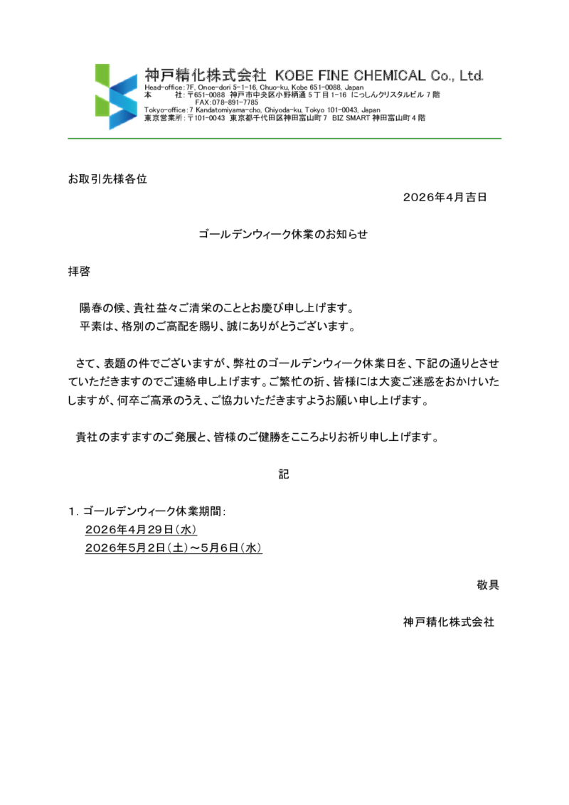 (HP掲載用)神戸精化2026ゴールデンウィーク休業ご案内